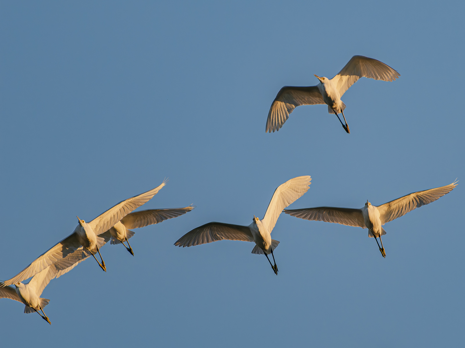 Flocks of egrets fly in as the sun starts to set